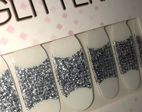 poshmark Nail Strips by GLITTERATI - Easy to Apply Self Adhesive Real Nail Art Decals, Full Wrap Stickers - Silver Glitter French Nail Tips, 18 Count with Nail File …